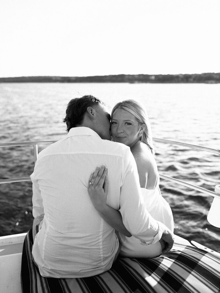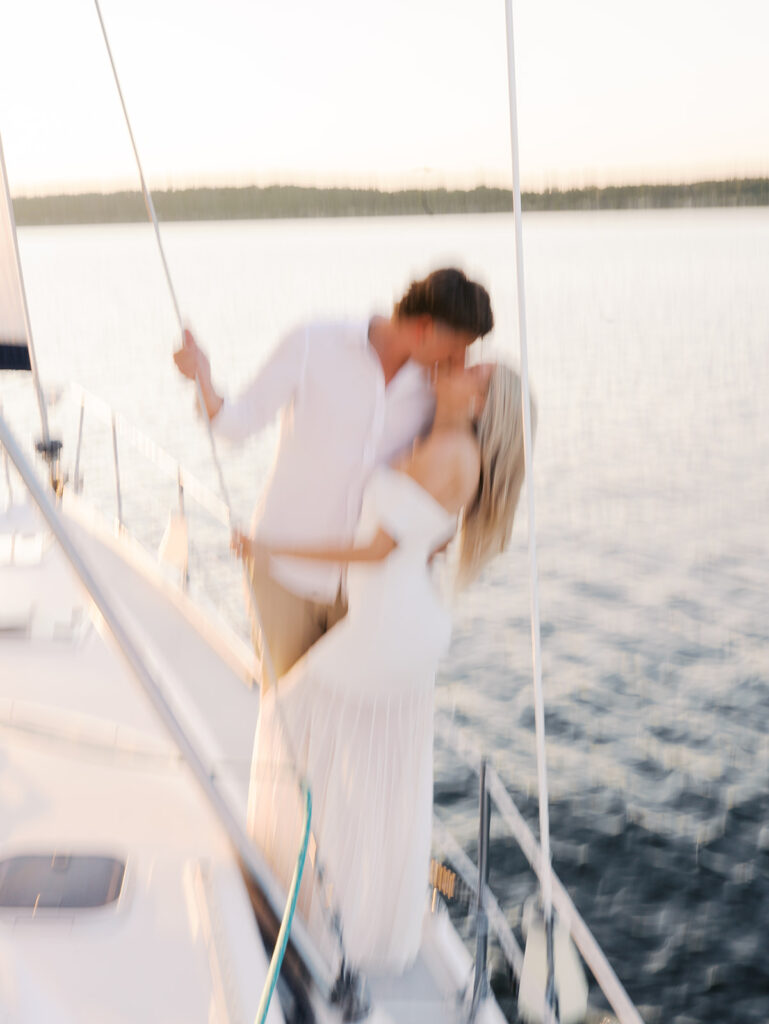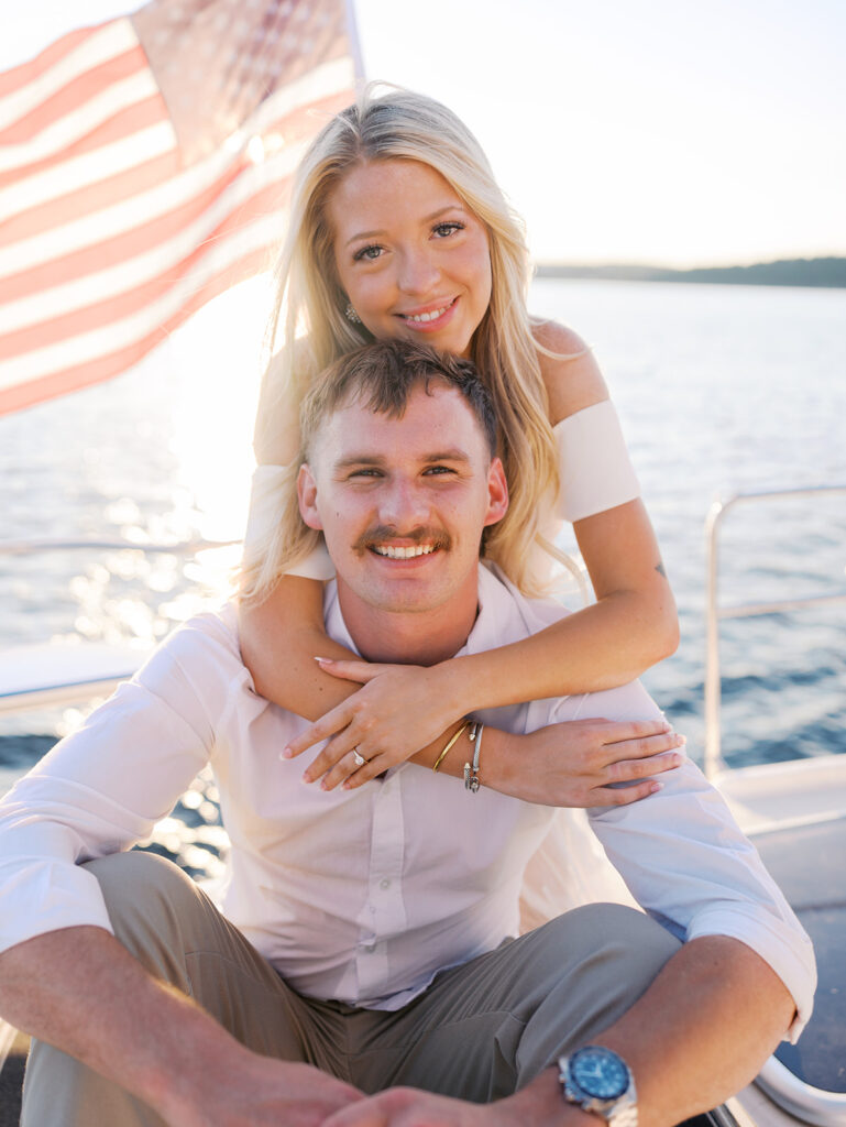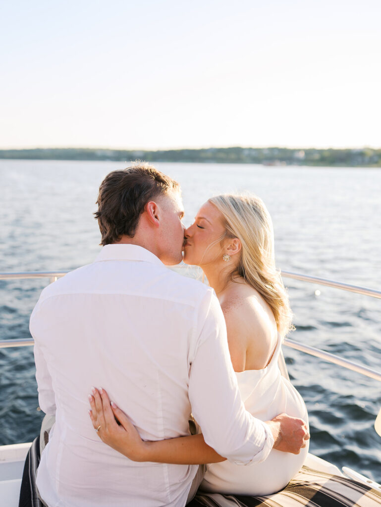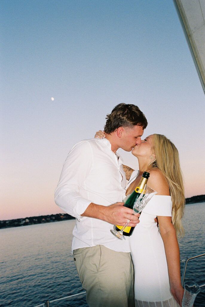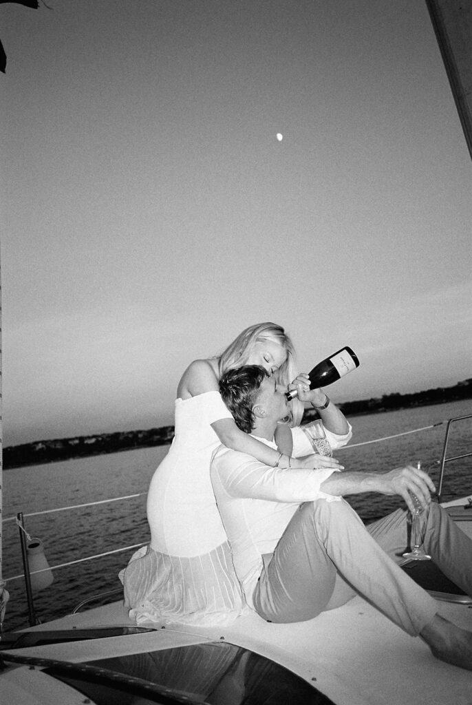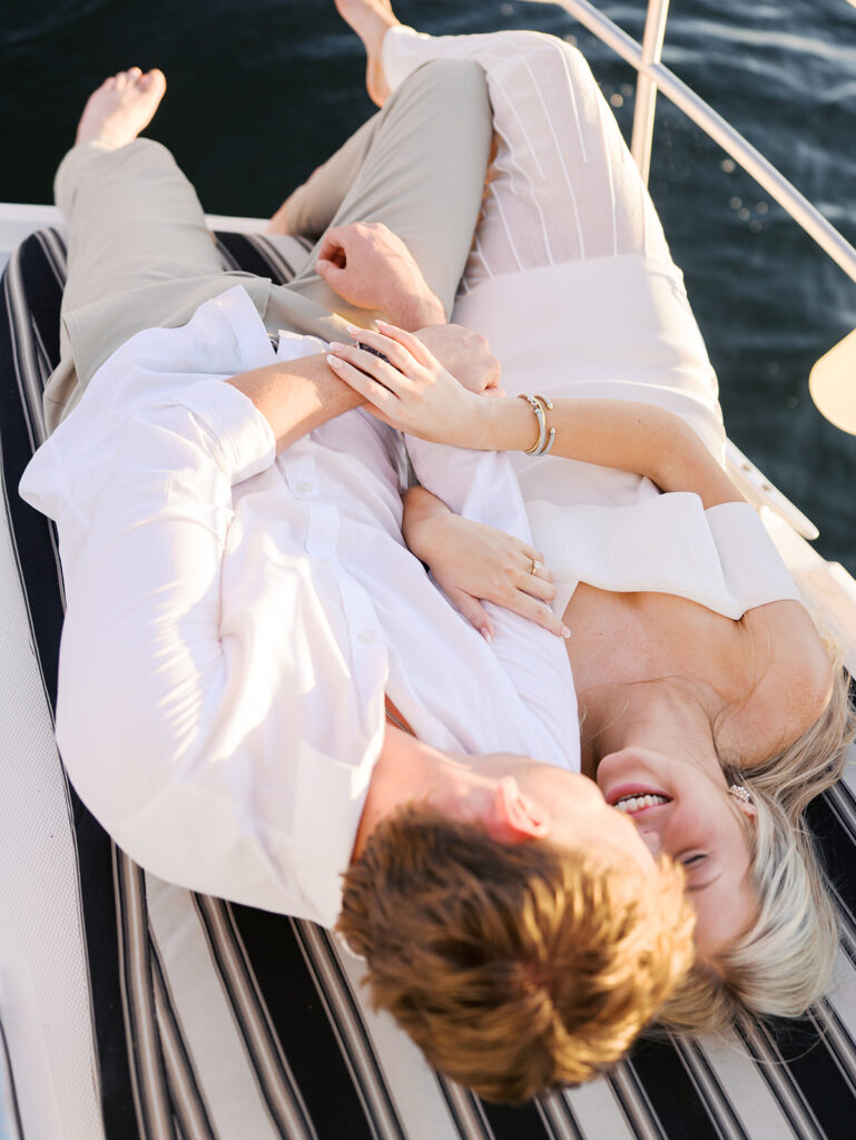 Lake Travis gave us everything – golden hour light, a fiery sunset, and even a glowing moon that set the perfect mood. With champagne on deck, laughter in the air, and the sailboat as their backdrop, every moment felt both fun and intimate.