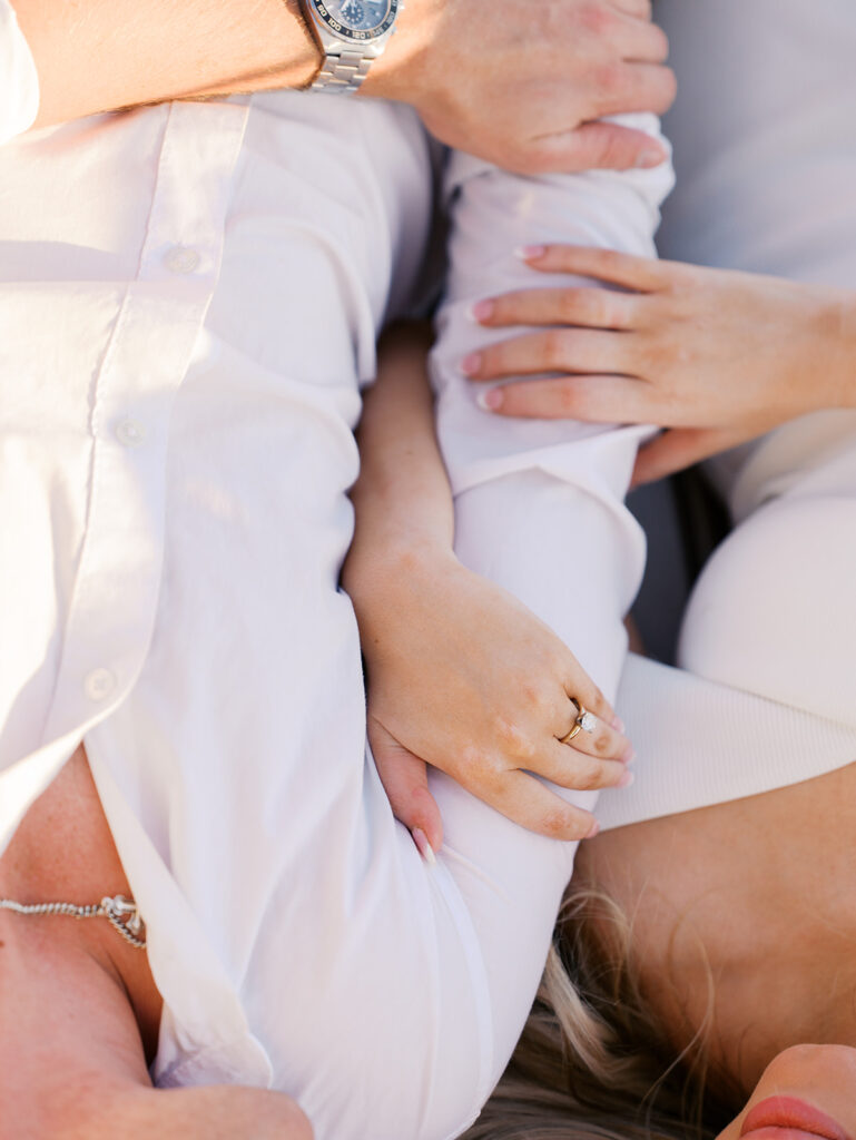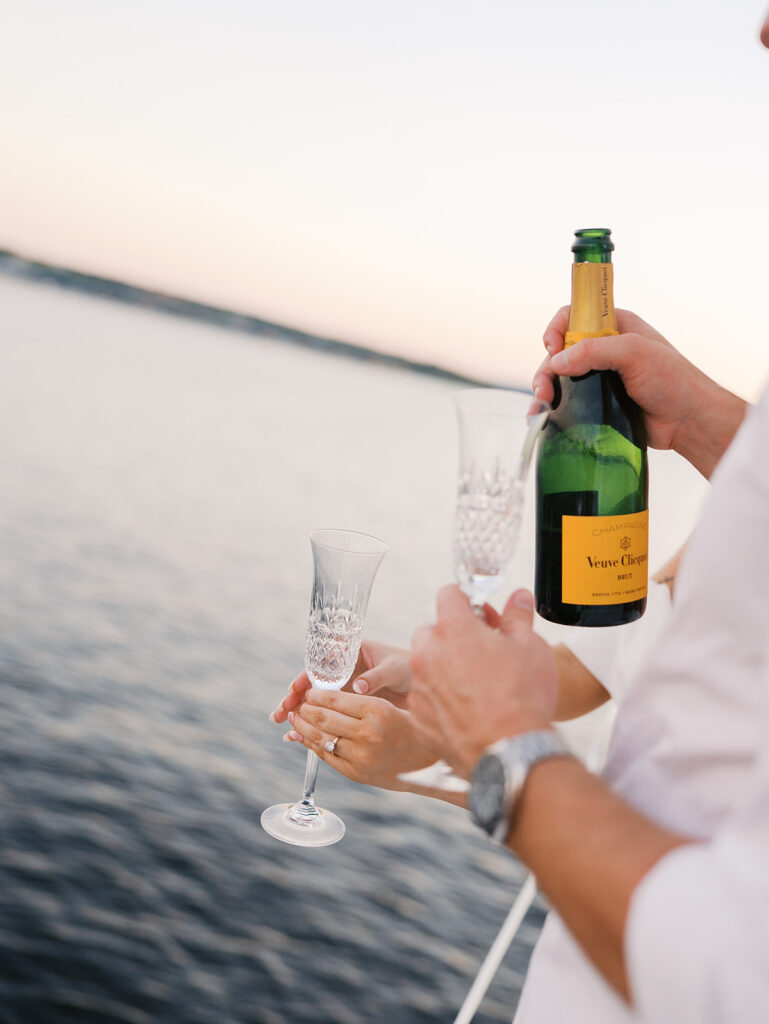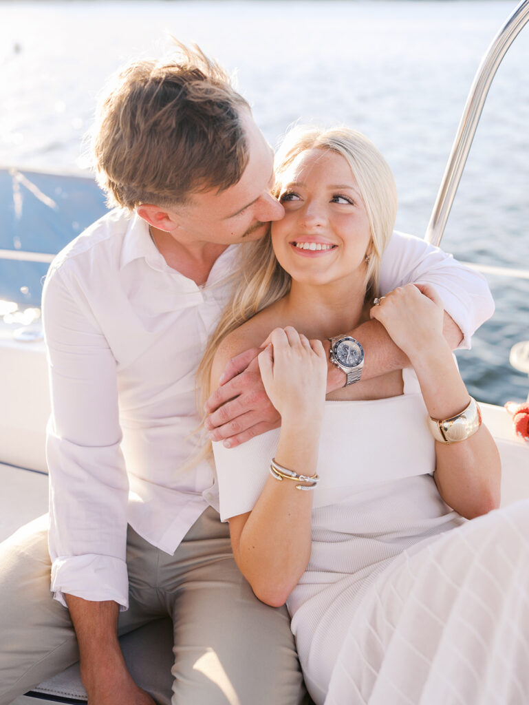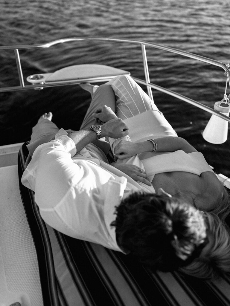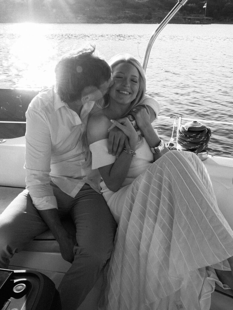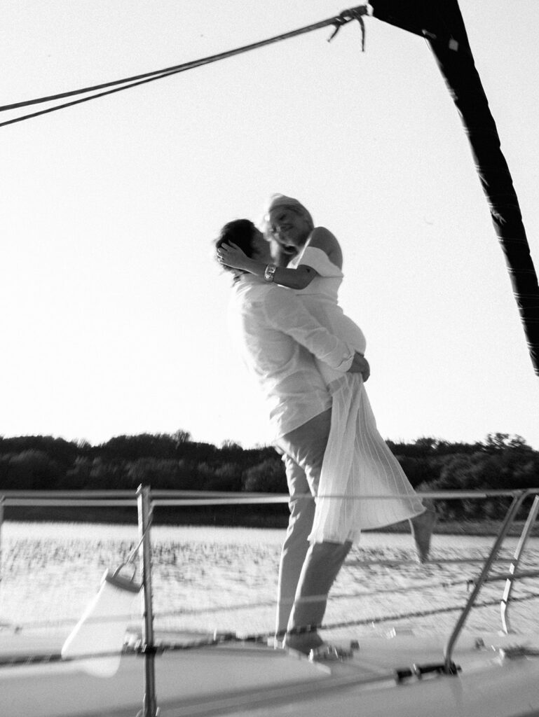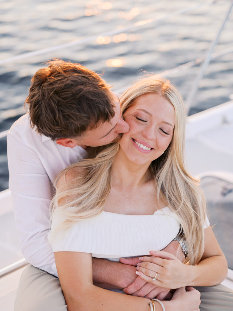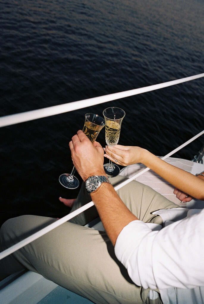 Lake Travis gave us everything – golden hour light, a fiery sunset, and even a glowing moon that set the perfect mood. With champagne on deck, laughter in the air, and the sailboat as their backdrop, every moment felt both fun and intimate.