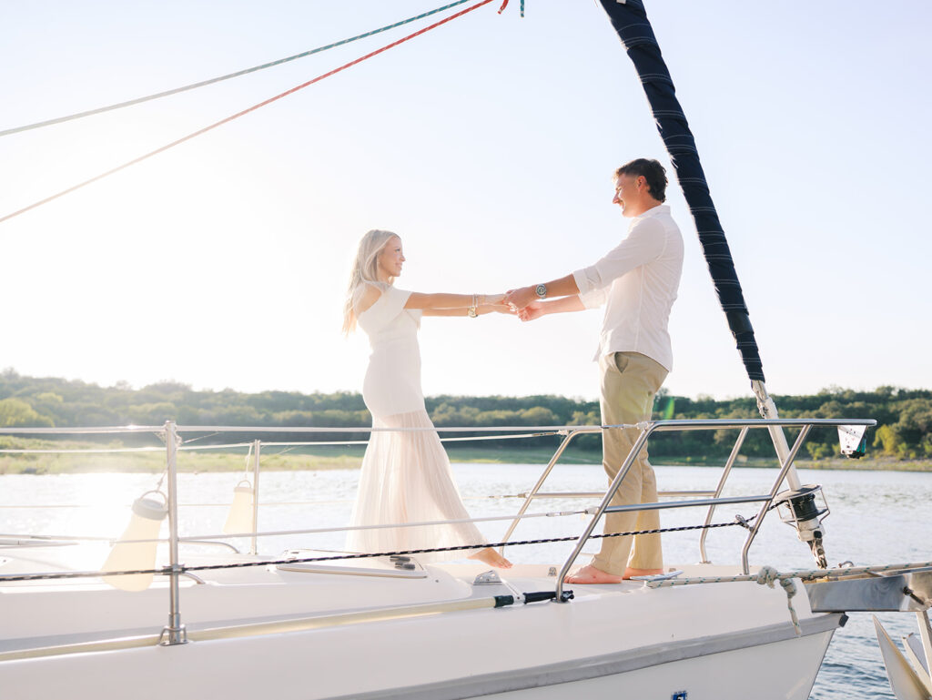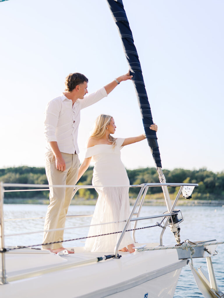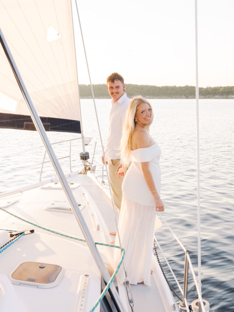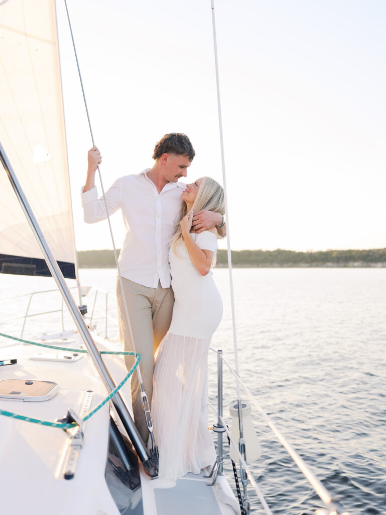 Working with Ainslea & Carson on their sailboat engagement session was such a dream. These two grew up on the water and share a love for New England and sailing, so we brought their Rhode Island vision to life right here in the heart of Texas with @sailaustin.tx.