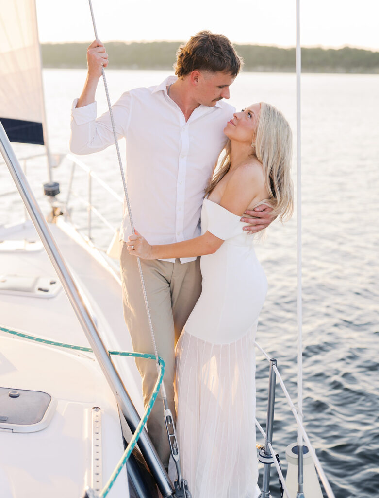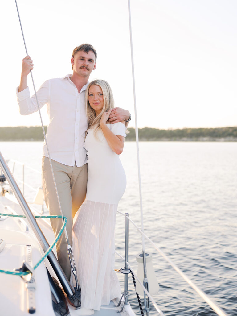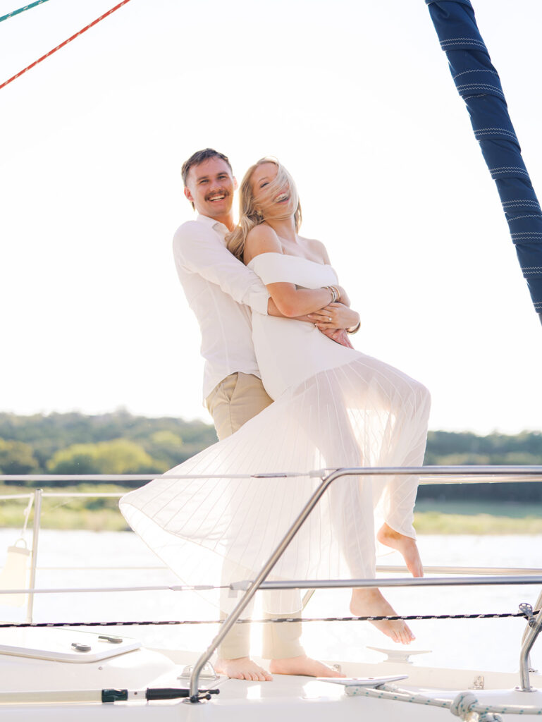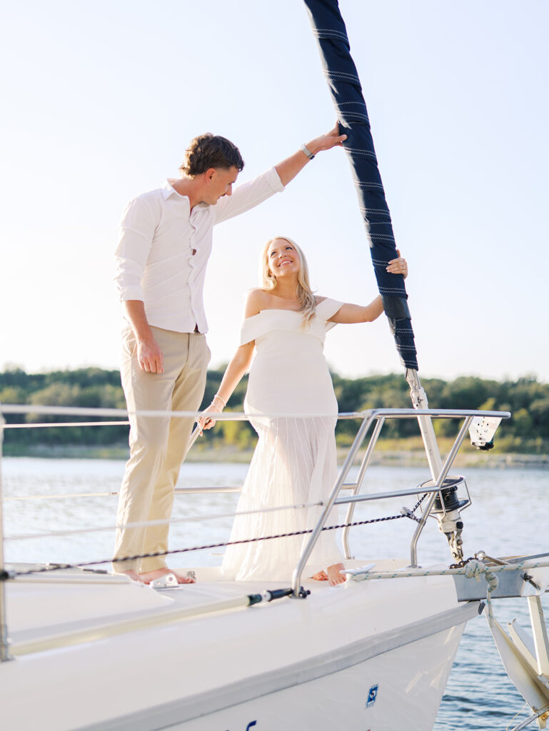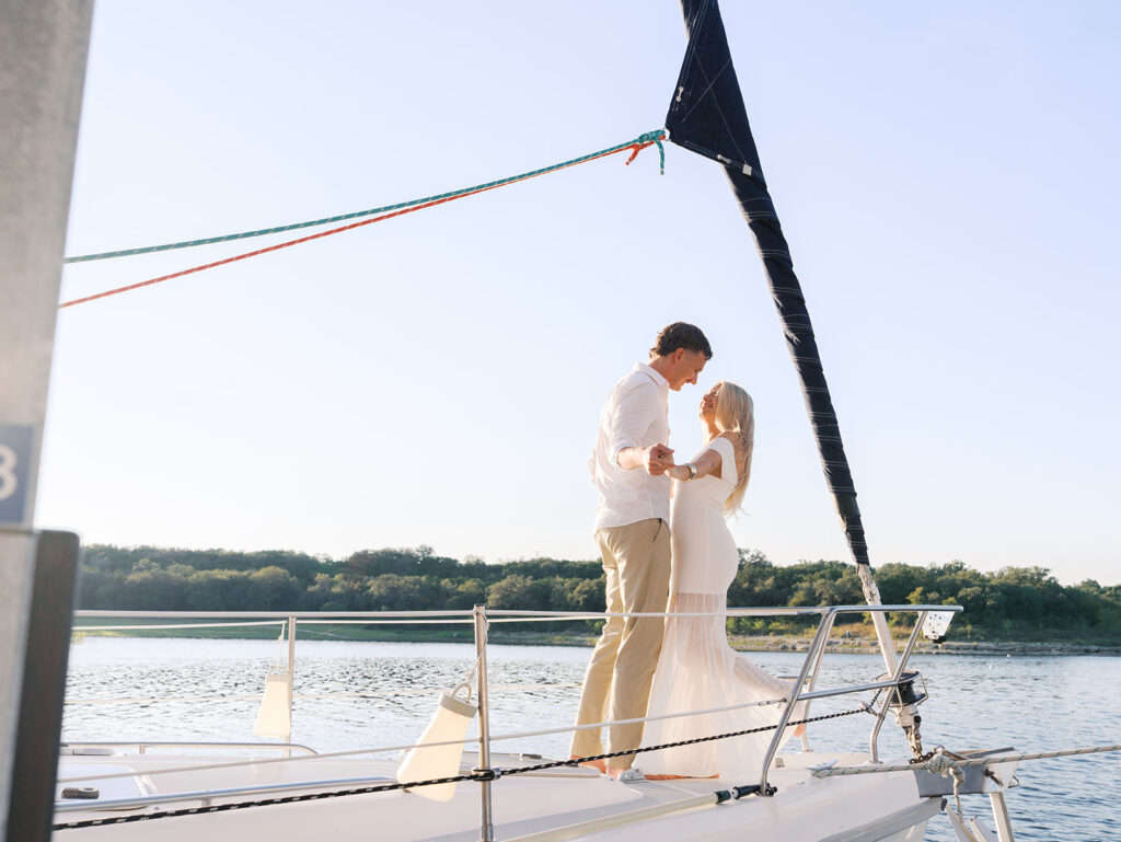 Working with Ainslea & Carson on their sailboat engagement session was such a dream. These two grew up on the water and share a love for New England and sailing, so we brought their Rhode Island vision to life right here in the heart of Texas with @sailaustin.tx.