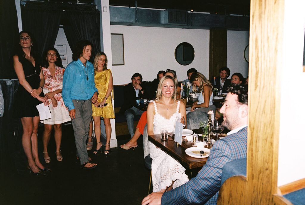 Photographing the night on film was a beautiful result – film captures the atmosphere as it actually felt: soft and intimate. Loved setting the tone for a stunning wedding weekend ahead.