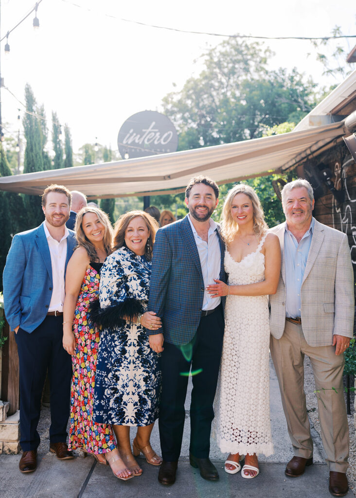 This intimate rehearsal dinner at Intero Restaurant in Austin, TX was especially meaningful because it’s Lindsey and Mac’s favorite date night spot! Hosting the dinner somewhere they already loved made the evening feel personal and easy, like bringing their people into a place that’s already part of their routine.