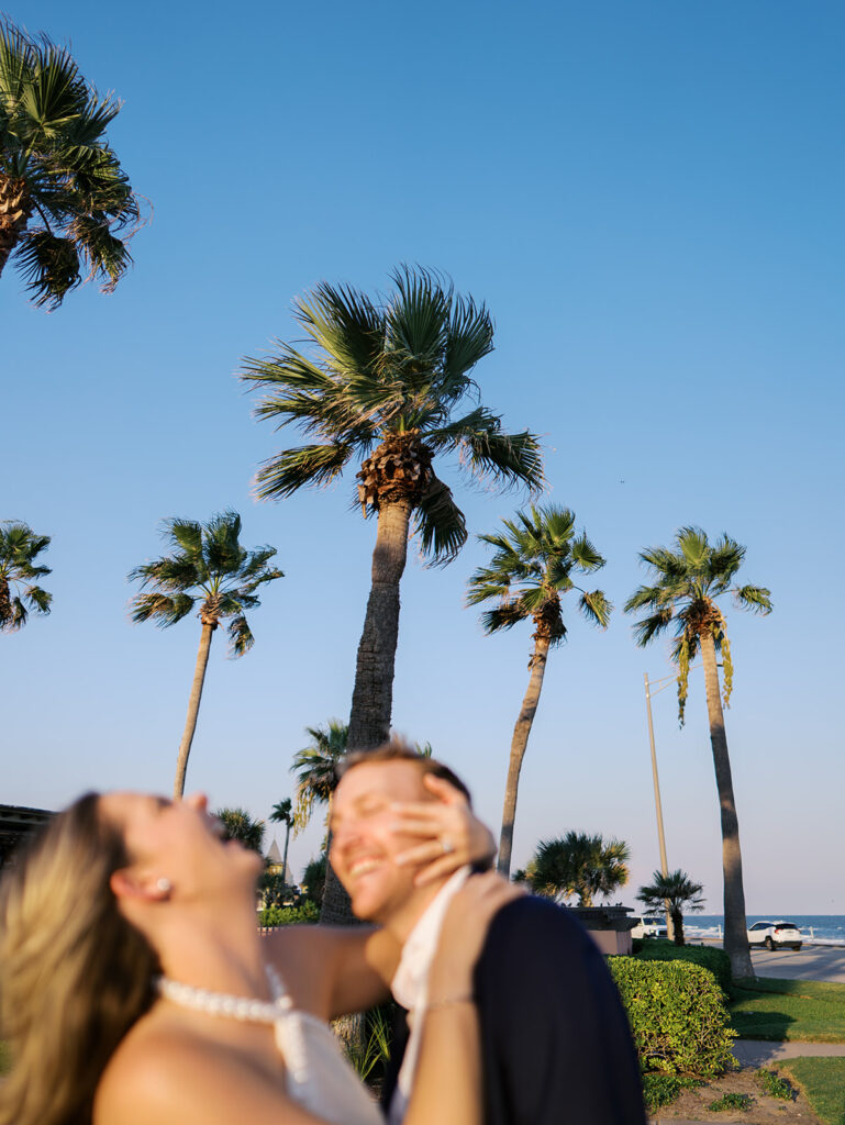 Emma and Luke’s engagement session at the Grand Galvez was everything I love about photographing on the coast. The pastel walls, swaying palms, and soft ocean breeze all came together in my happy place, creating a gallery that feels warm, joyful, and full of light.