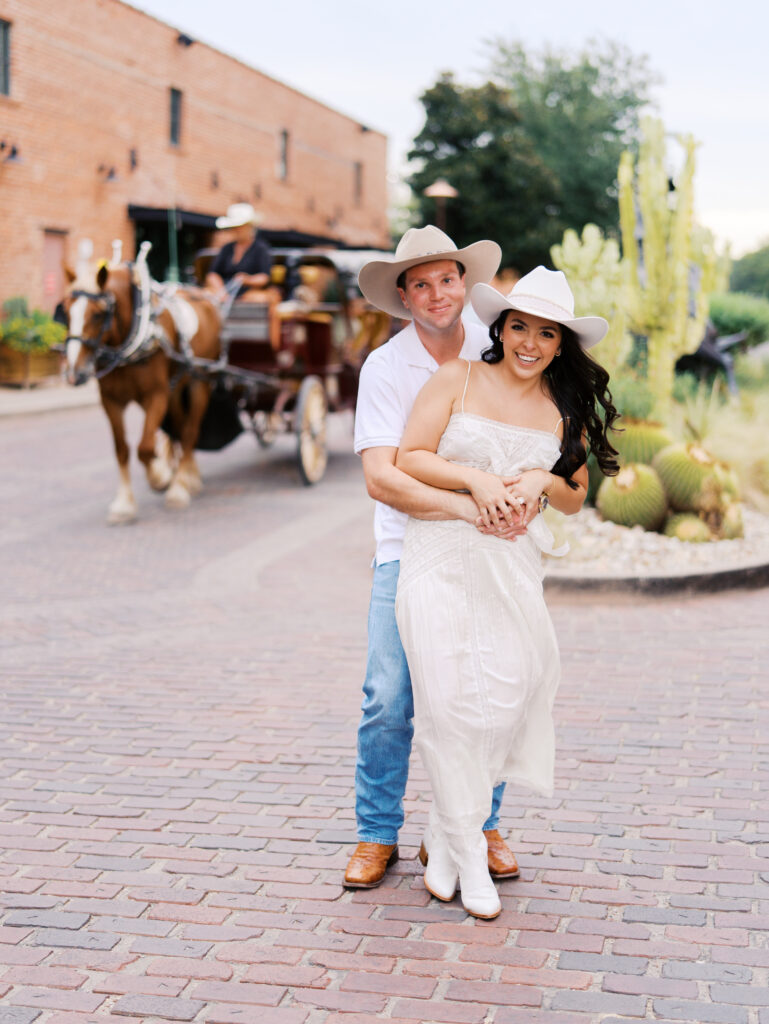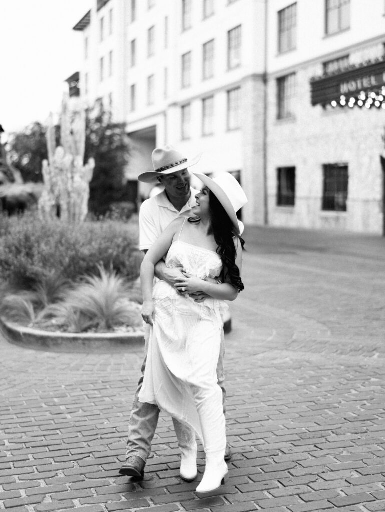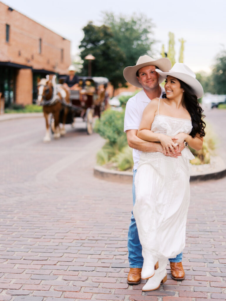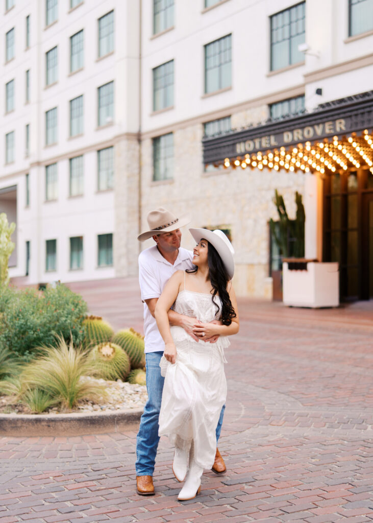 There’s something special about engagement sessions at Hotel Drover, and Elise and Parker’s was no exception! Set against the character and charm of the Fort Worth Stockyards, their session struck the perfect balance of relaxed, timeless, and full of genuine connection.