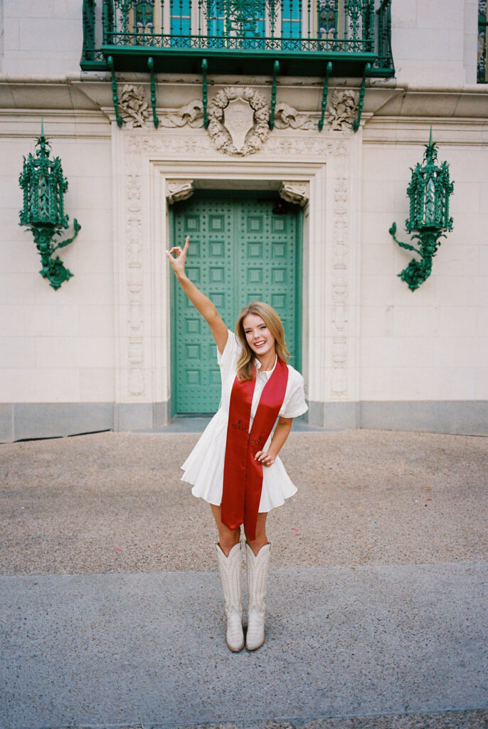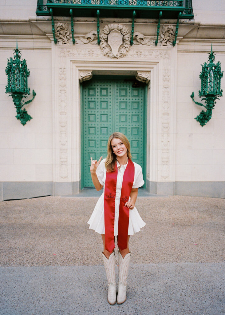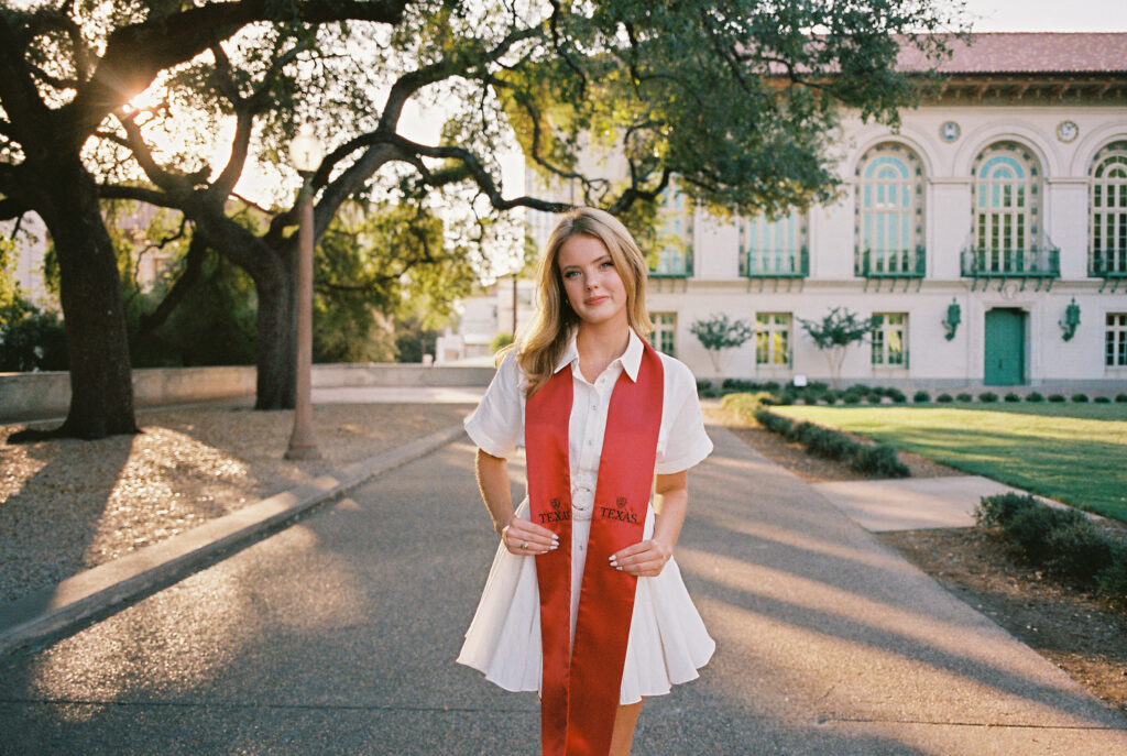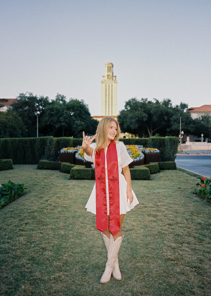 There’s something so special about UT grad photos, that perfect mix of pride, nostalgia, and excitement that fills the campus each year. For Claire’s UT Austin senior session, we set out to capture all of that energy in timeless, joyful portraits on digital and film.