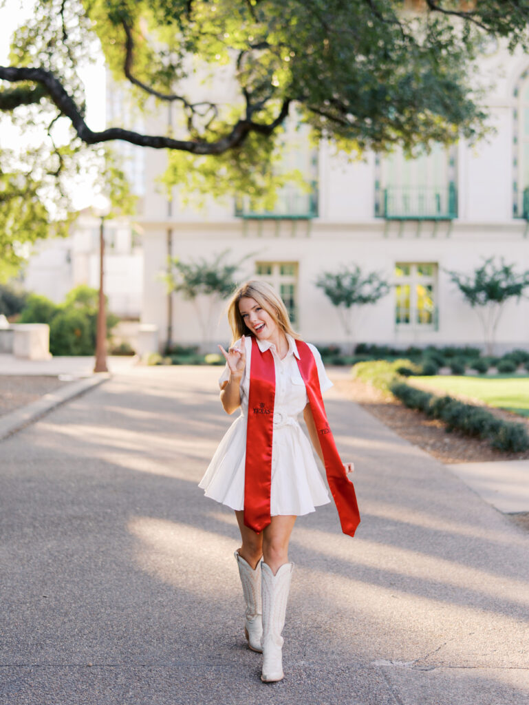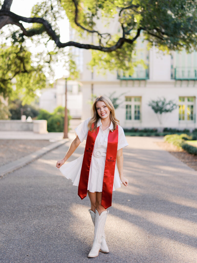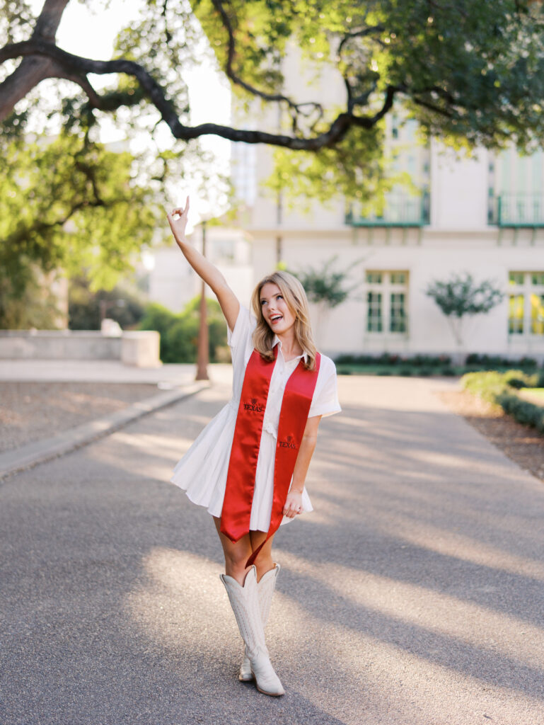 Claire’s vision was to blend the classic University of Texas senior photo look with something modern and true to her. As a fashion lover, her fashion choices were unique and special to her! Between laughter, champagne, candid moments, and some great light, we created a collection that perfectly captures who she is and what this milestone means.