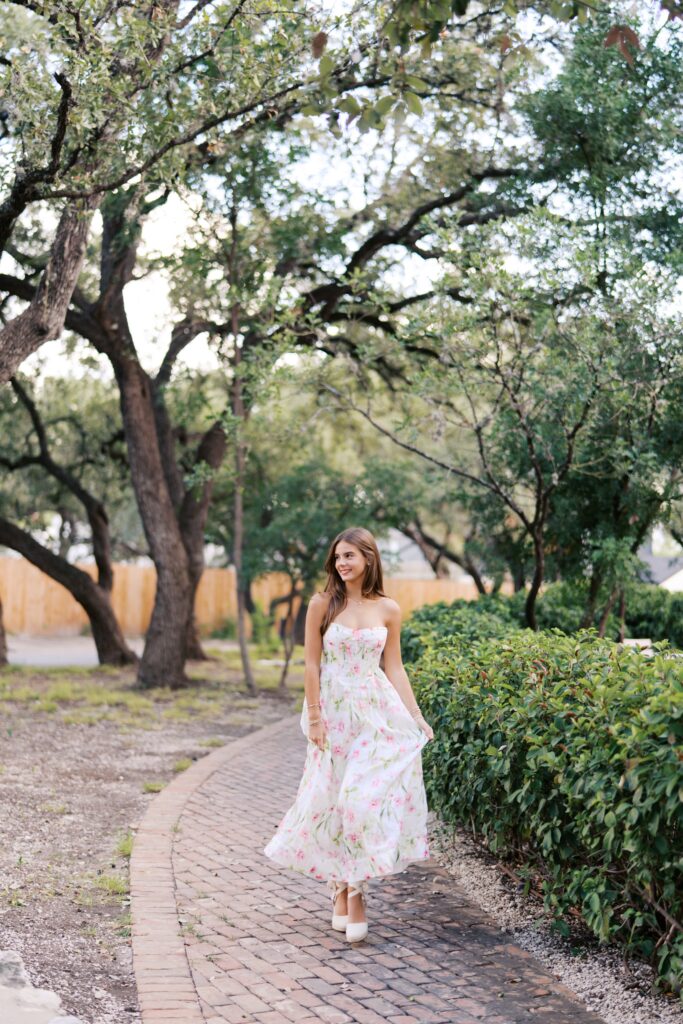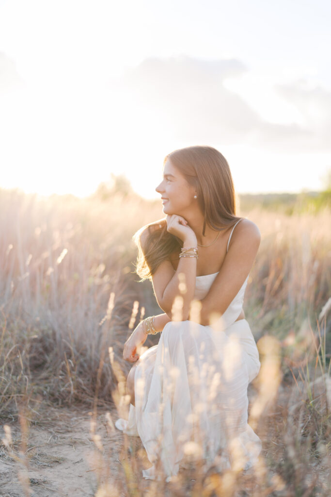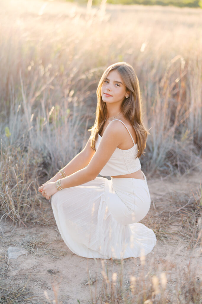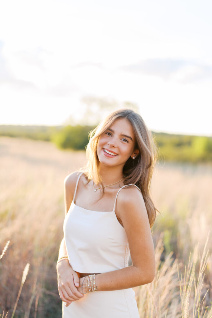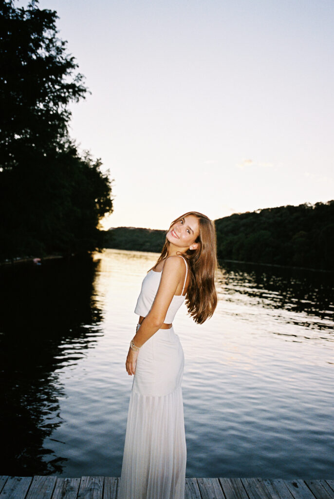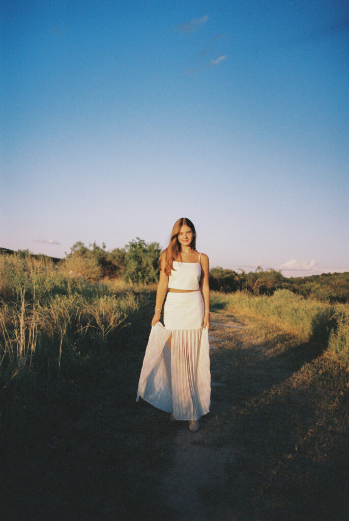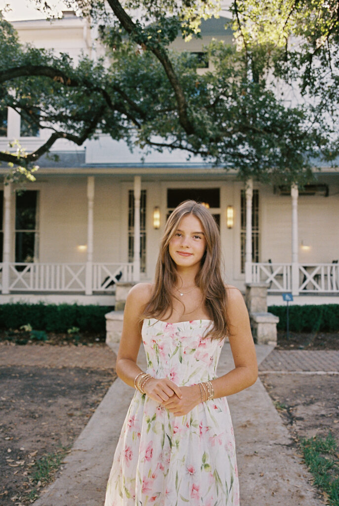 Absolutely in love with Julep’s senior session – we started at Mattie’s, where the oak trees and classic white exterior bring that elegant, timeless feel. Then we headed out to Commons Ford for that golden, outdoorsy glow that only Texas evenings can give. It’s the perfect combo if you want something a little bit dressy and a little bit outdoorsy.