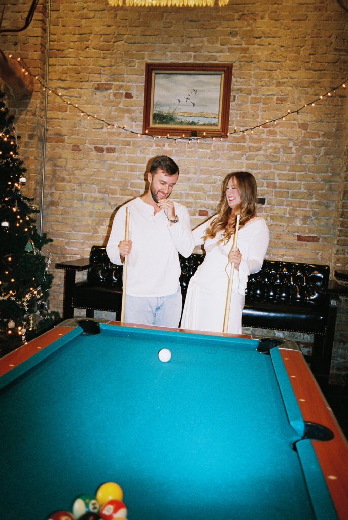 Instead of building the session around poses, we focused on what they’d normally do there: order drinks, play pool, move through the space, and interact naturally. That structure keeps things from feeling stiff and gives the photos more rhythm and real moments to work with.